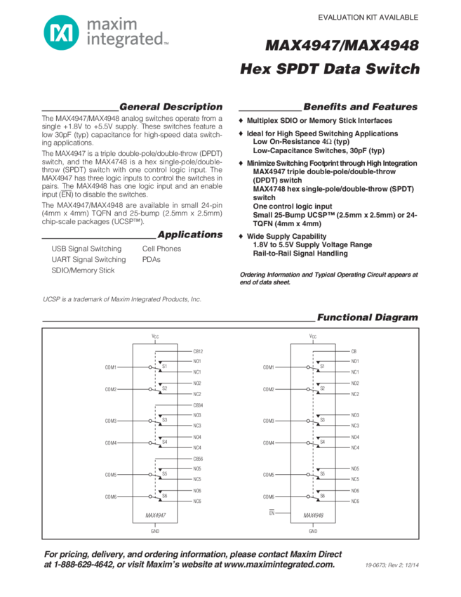 MAX4948 Hex SPDT Data Switch for SDIO Interfaces