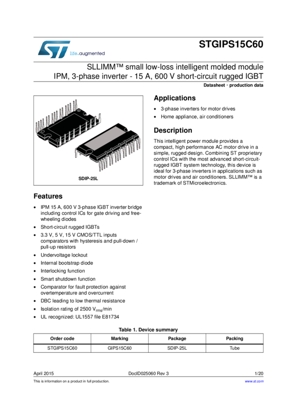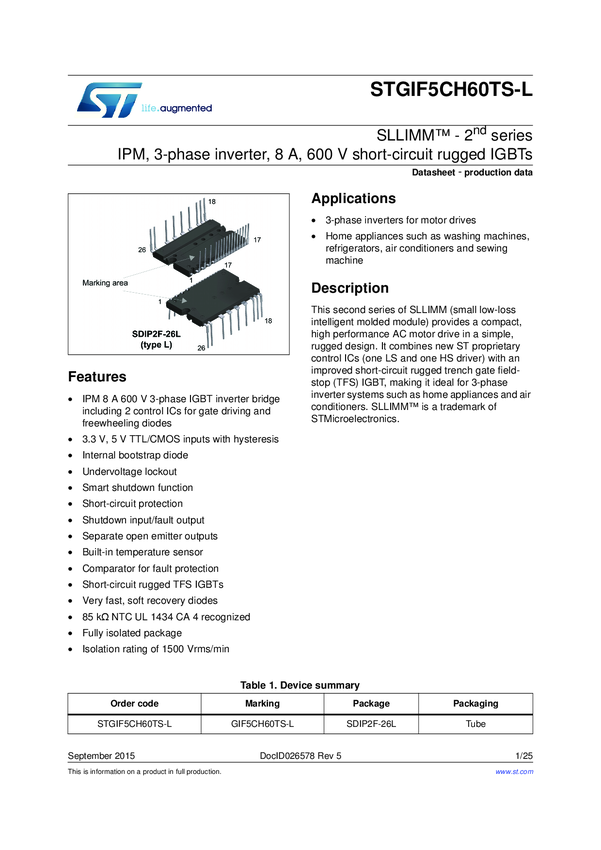 SLLIMM 3-phase Inverter 26-Pin SDIP2F Tube