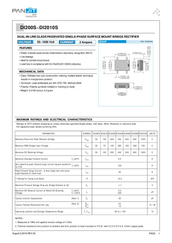 Diode Rectifier Bridge Single 200V 2A 4-Pin SDIP Tube