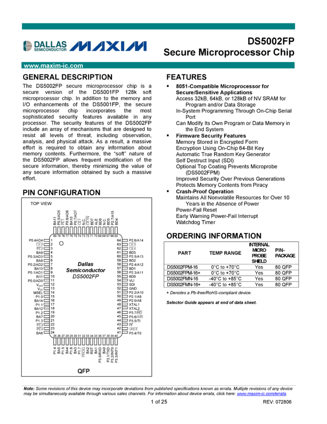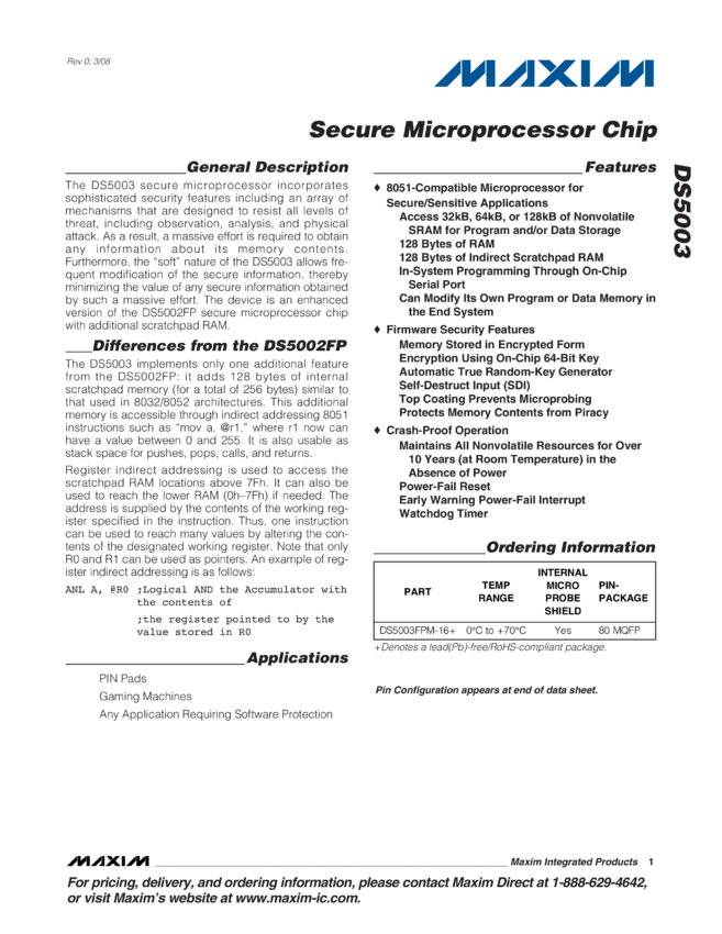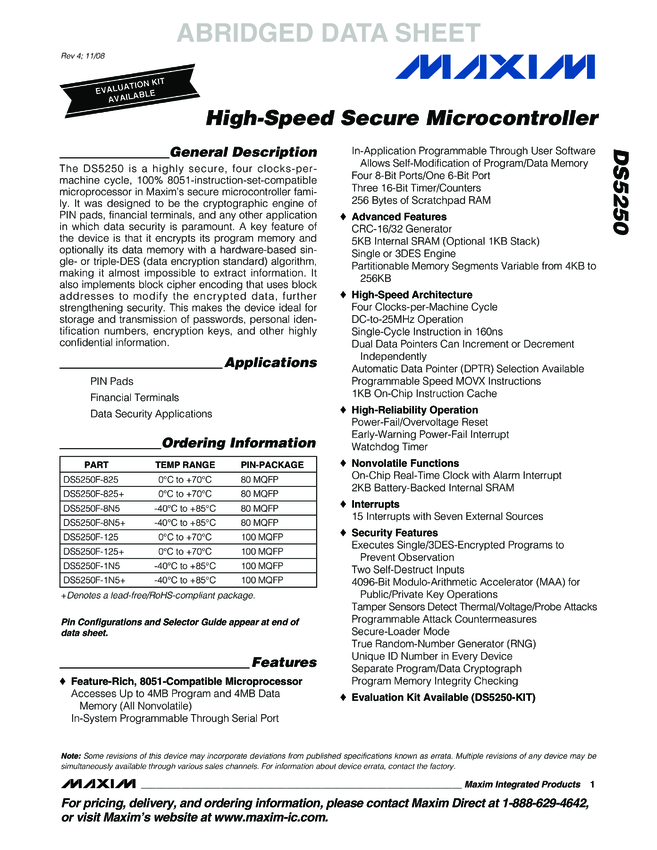 MAXQ1850 DeepCover Secure Microcontroller with Rapid Zeroization Technology and Cryptography