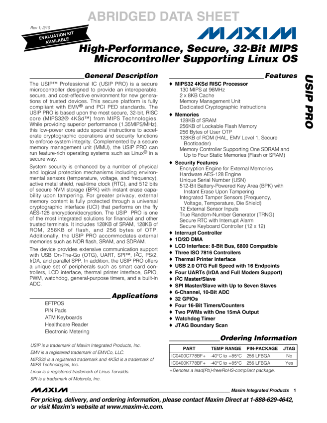 USIP DeepCover Secure Microcontroller with MIPS 4KSd Processor Core