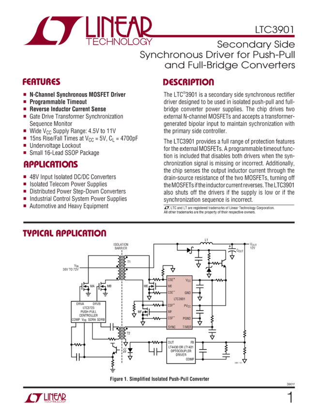 Secondary Side Synchronous Driver for Push-Pull and Full-Bridge Converters