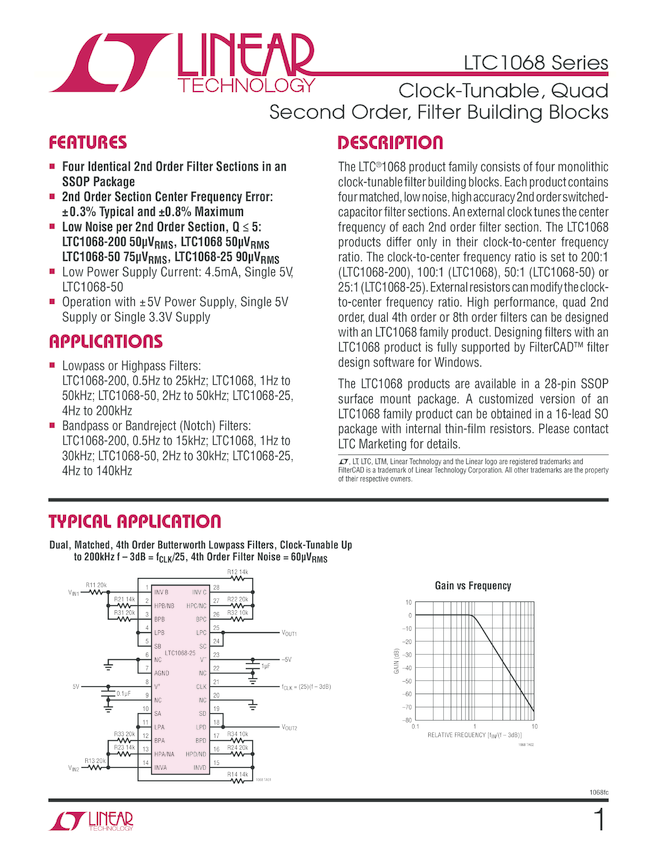 Clock-Tunable, Quad Second Order, Filter Building Blocks
