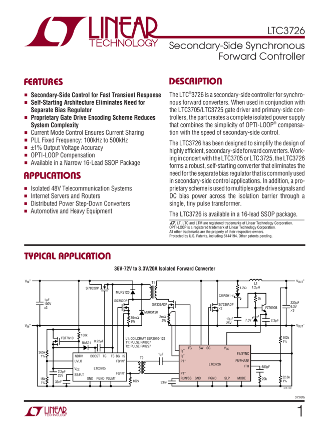High Efficiency, Secondary-Side Synchronous Forward Controller