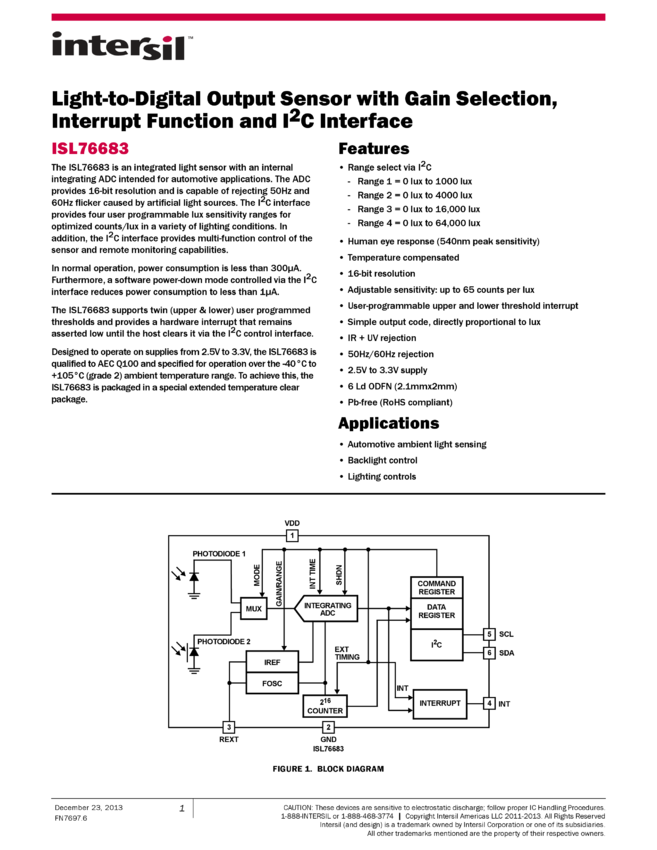Light-to-Digital Output Sensor with Gain Selection, Interrupt Function and I²C Interface