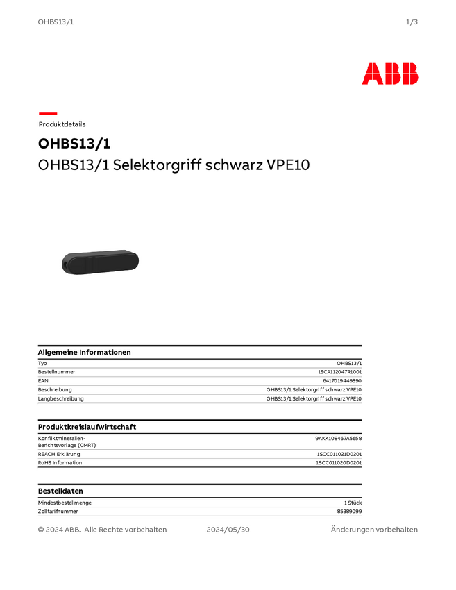 Uchwyt selektora ABB 1SCA112047R1001 1 szt.