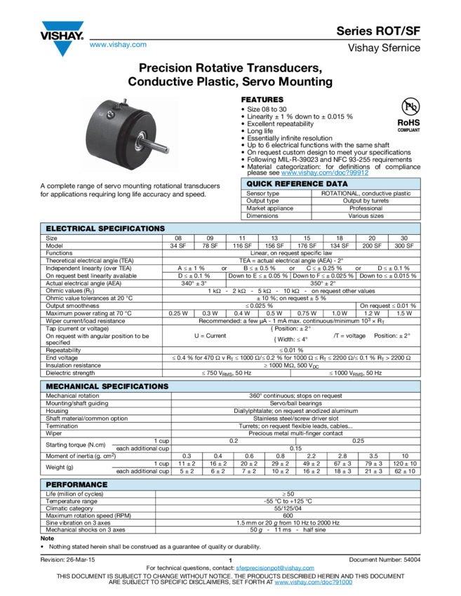 Rotational Type Position Sensors 50G Shock Servo Mount