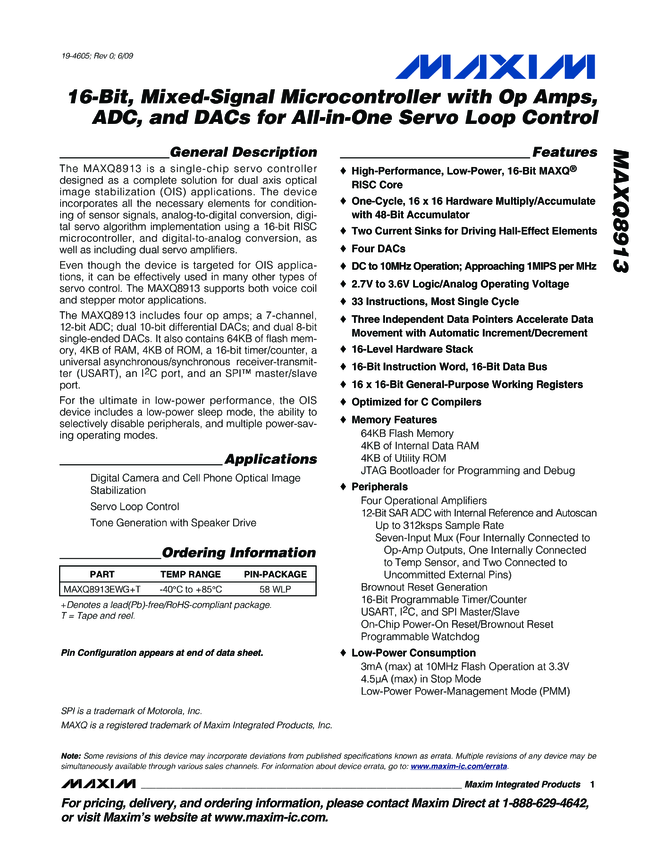 MAXQ8913 16-Bit, Mixed-Signal Microcontroller with Op Amps, ADC, and DACs for All-in-One Servo Loop Control