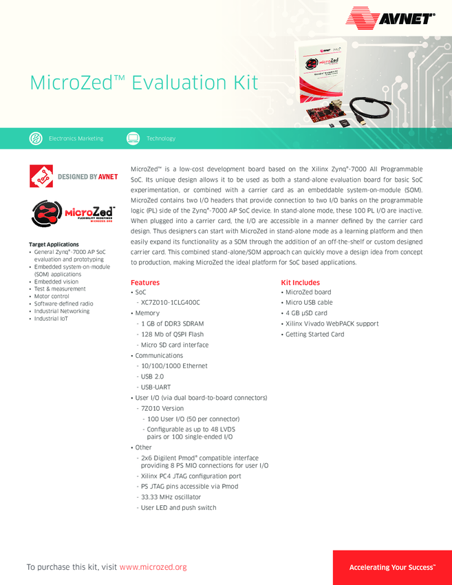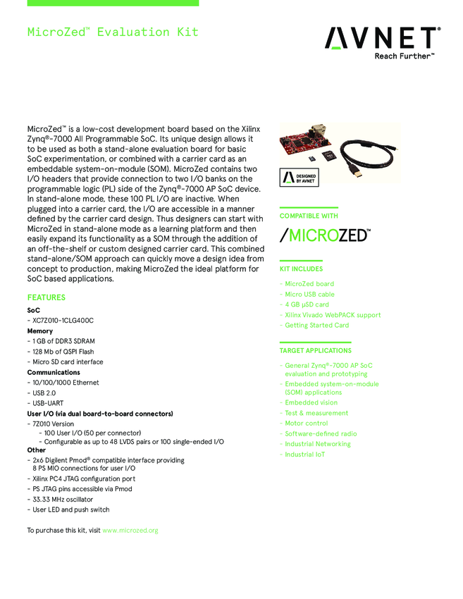 Zynq-7000 Programmable SoC 7Z010 MicroZed System on Module Cost Optimized -40 to 85C