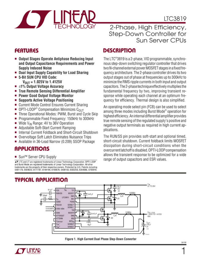 2-Phase, High Efficiency, Step-Down Controller for Sun Server CPUs