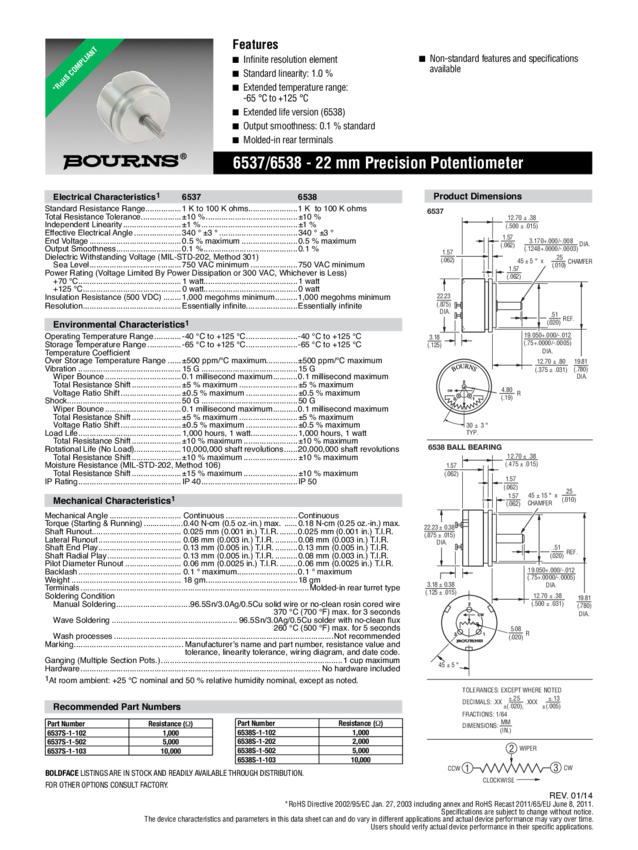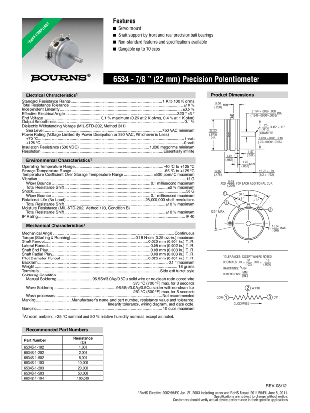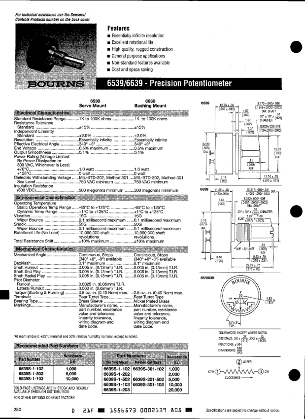 Res POT 2K Ohm 15% 1W 1(Elec)/1(Mech)Turn 3.17mm (22.23 X 28.58mm) Turret Servo Mount