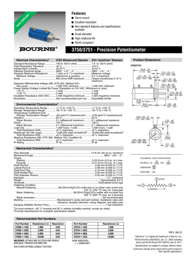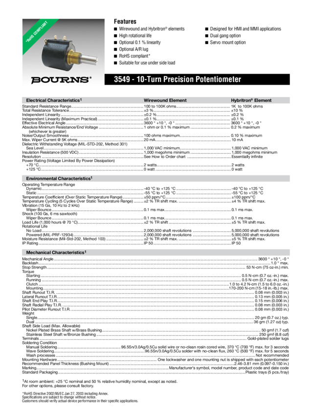 Res Hybritron POT 1K Ohm 10% 1W 10(Elec)/10(Mech)Turn 2.375mm (39.69 X 12.7 X 17.06mm) Turret Servo Mount