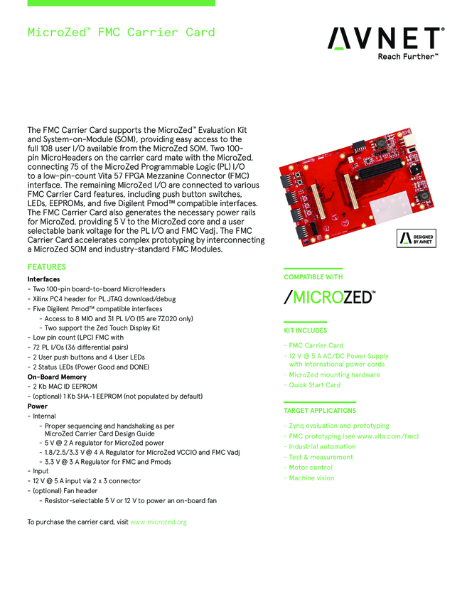MicroZed FMC Carrier Card For MicroZed Evaluation Kit and System-on-Module (SOM)