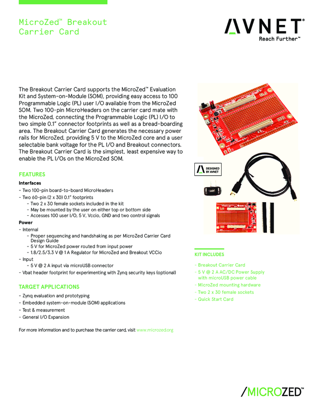 MicroZed Breakout Carrier Card For MicroZed Evaluation Kit and System-on-Module (SOM)