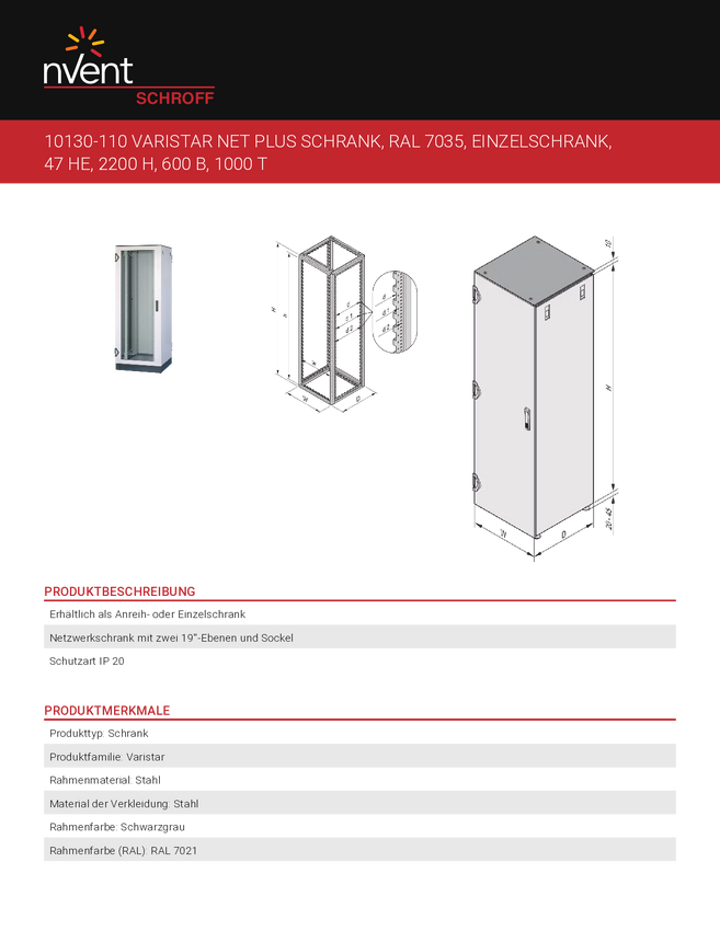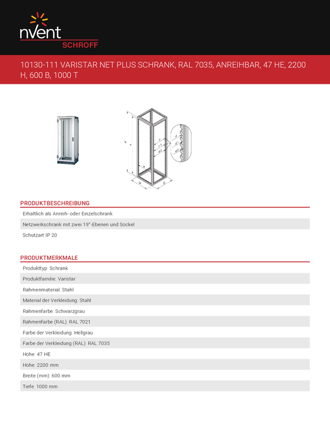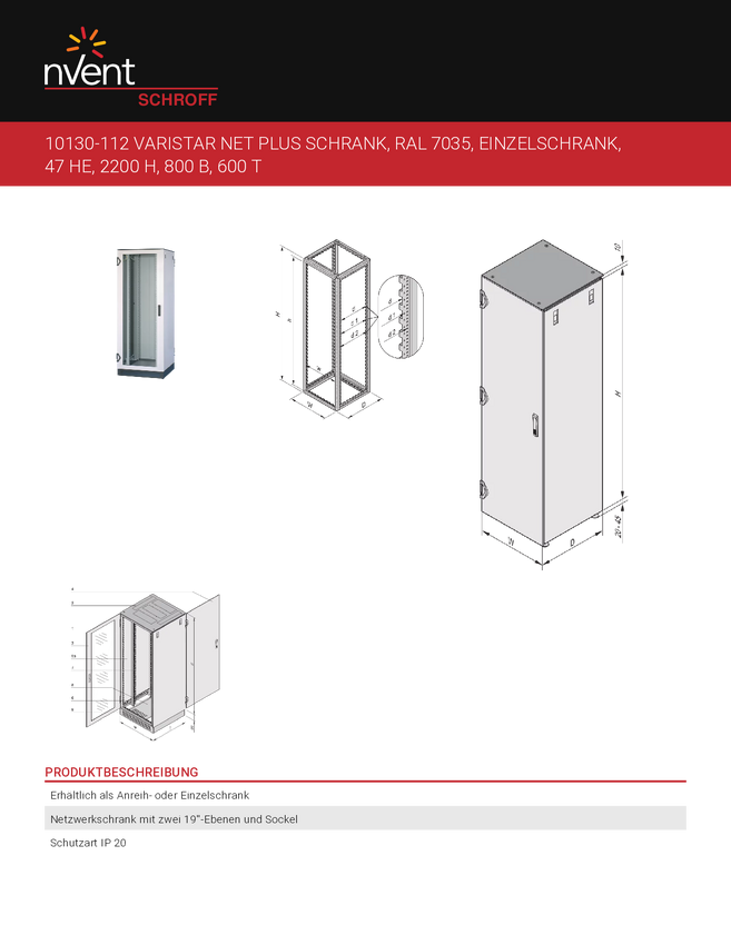nVent SCHROFF 10130110 Obudowa pusta szafy sieciowej/serwerowej 600 x 2200 x 1000 szaro-biały (ral 7035) 1 szt.
