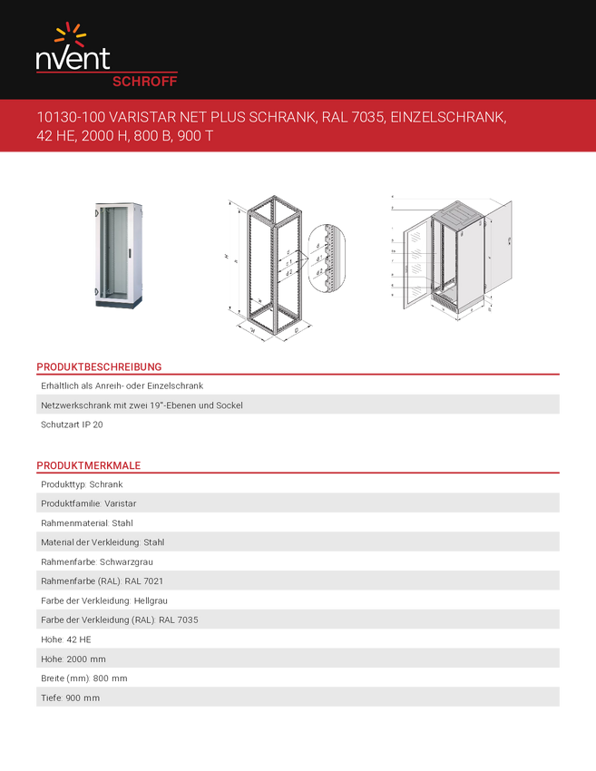 nVent SCHROFF 10130100 Obudowa pusta szafy sieciowej/serwerowej 800 x 2000 x 900 szaro-biały (ral 7035) 1 szt.