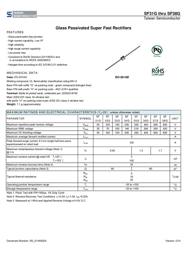 Dioda ESD Taiwan Semiconductor SF38G N/A N/A