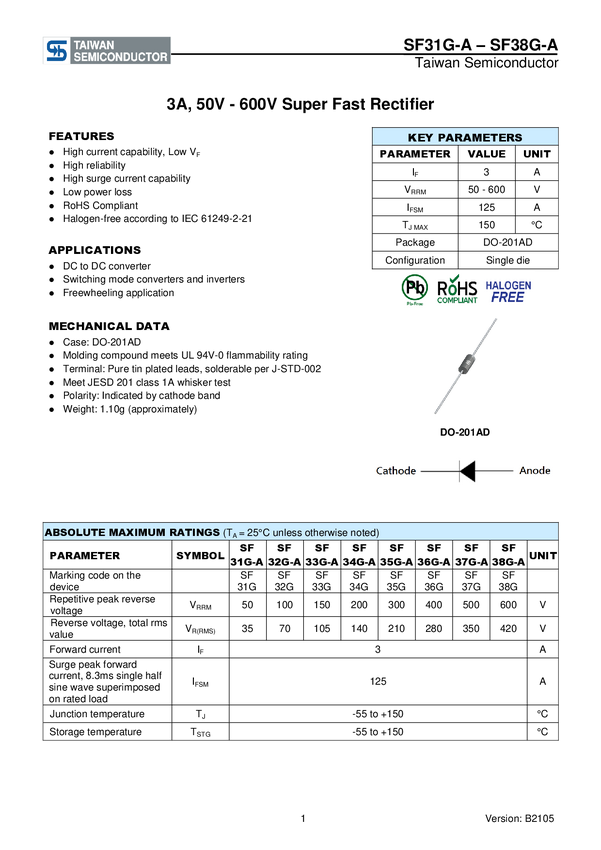 Dioda ESD Taiwan Semiconductor SF34G-A N/A N/A