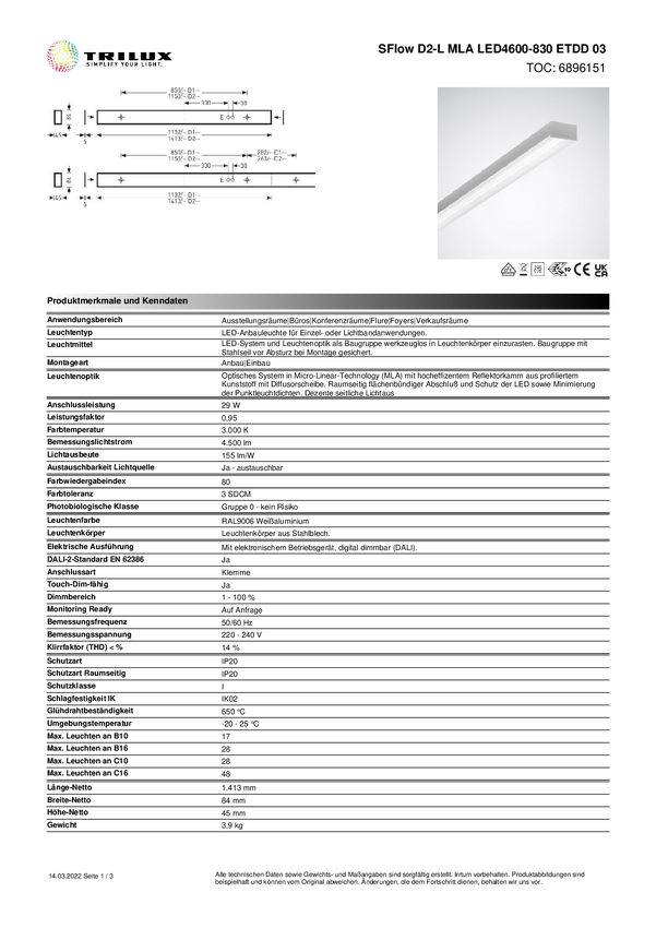 Lampa sufitowa LED Trilux SFlow D1-L #6895640 6895640 23 W 3100 lm biały