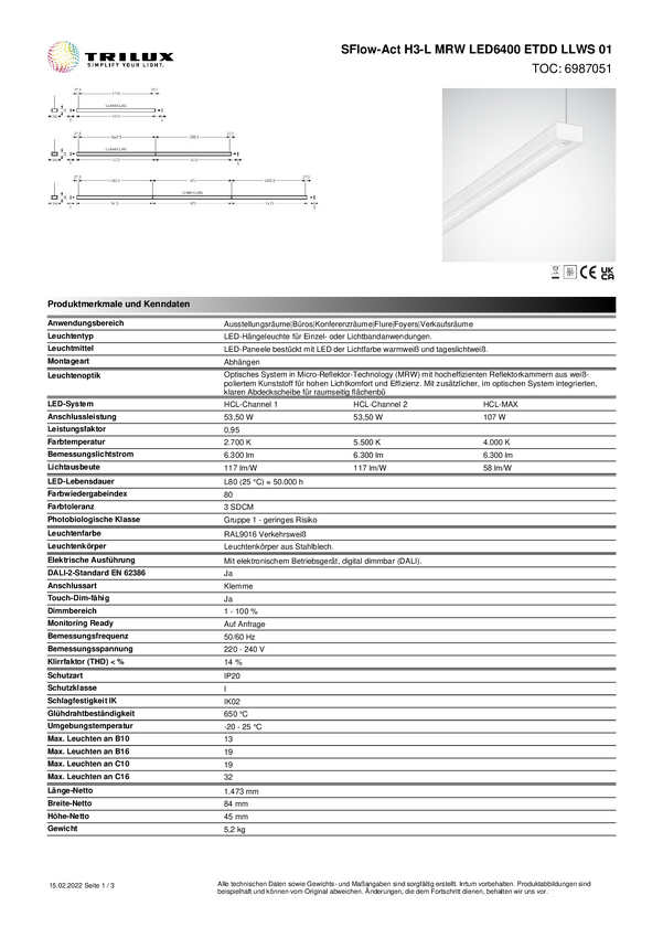 Lampa podwieszana LED Trilux SFlow-Act #6987051 6987051 brak 107 W biały
