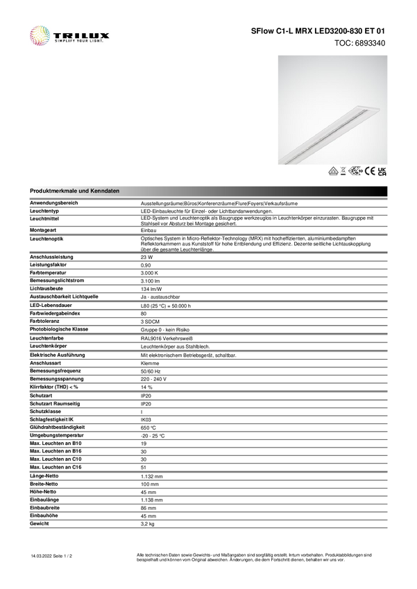 Lampa sufitowa LED Trilux SFlow C1-L #6893340 6893340 23 W 3100 lm biały
