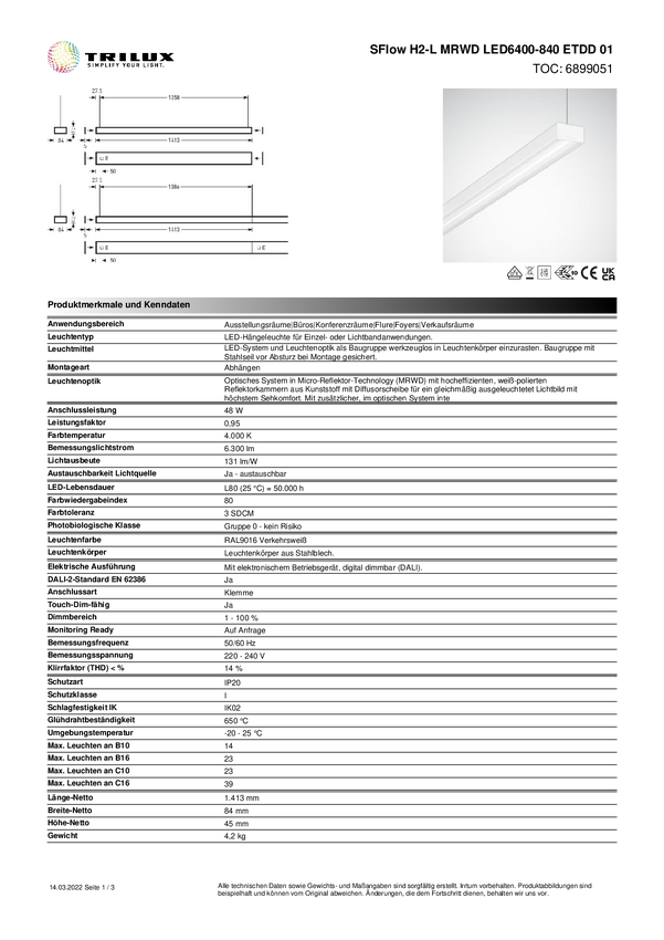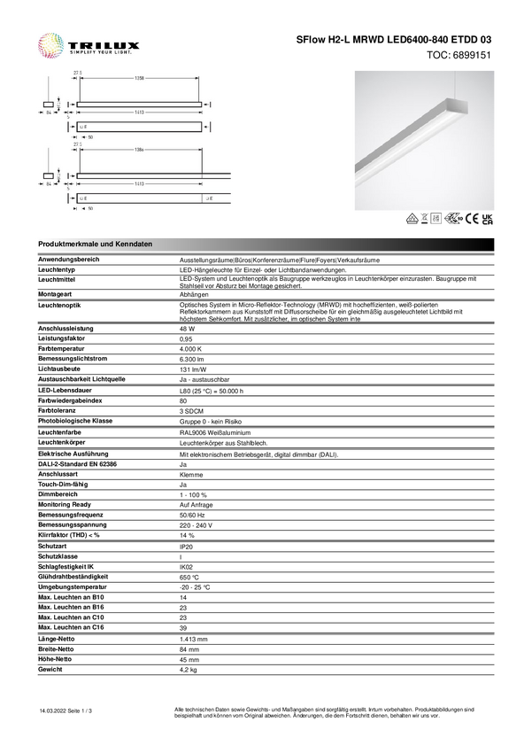 Lampa podwieszana LED Trilux SFlow H2-L #6899051 6899051 brak 48 W biały