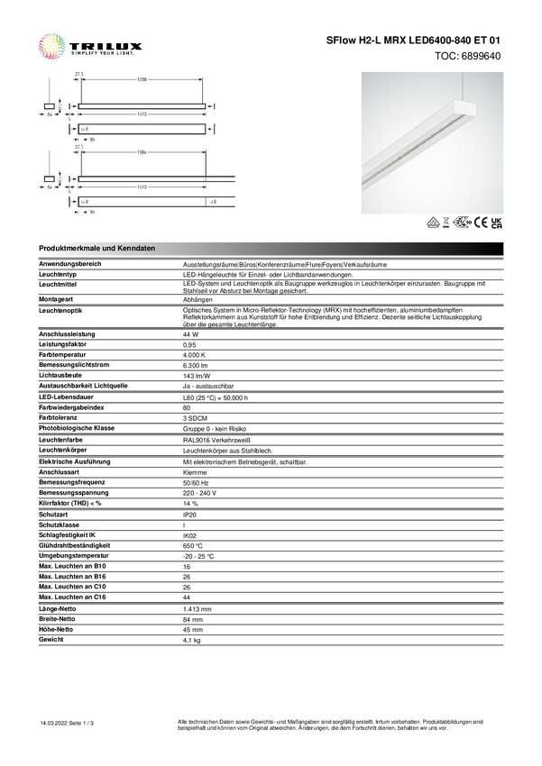Lampa podwieszana LED Trilux SFlow H2-L #6899640 6899640 brak 44 W biały