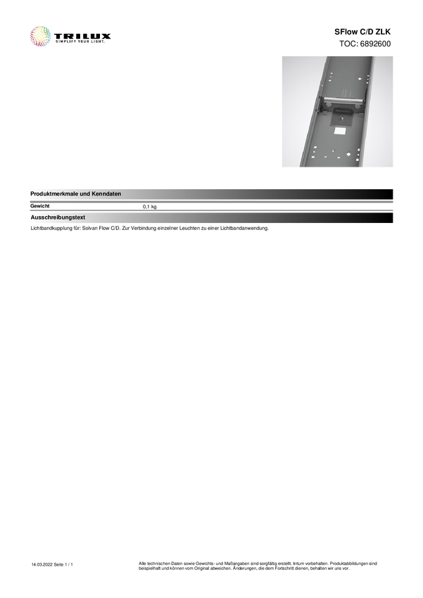 Trilux 6892600 Sprzęgło rzędowe ciągłe SFlow C/D ZLK 1 szt.