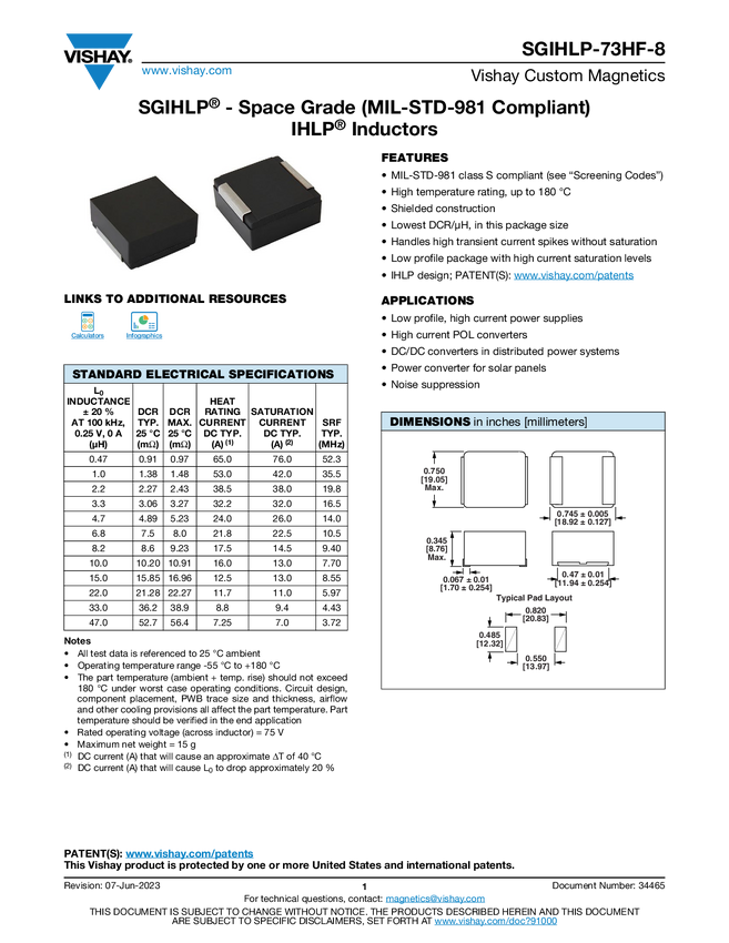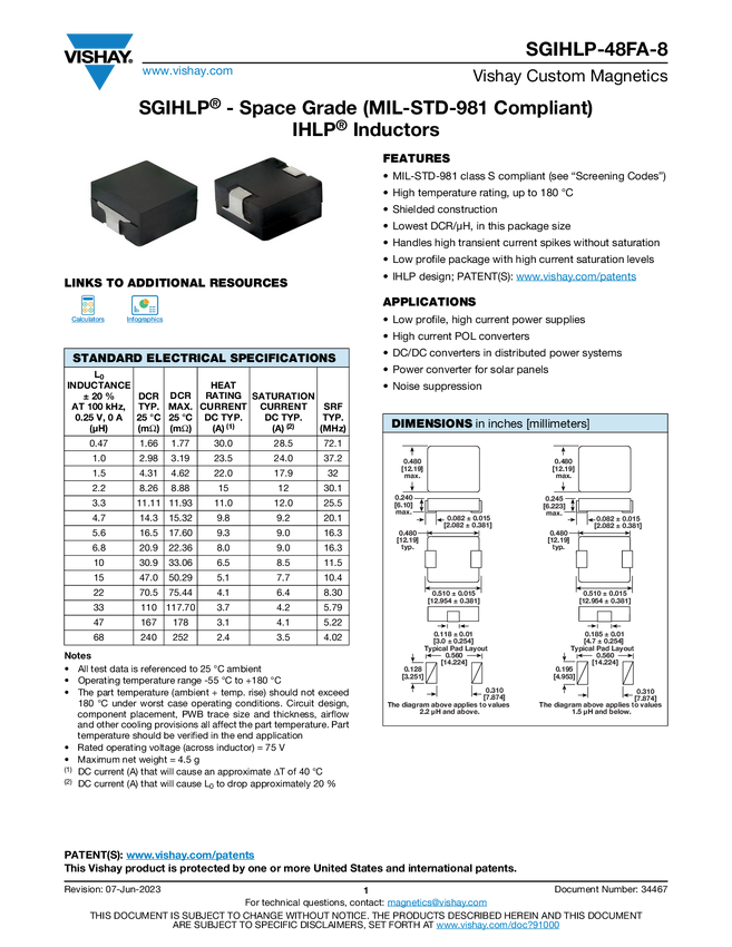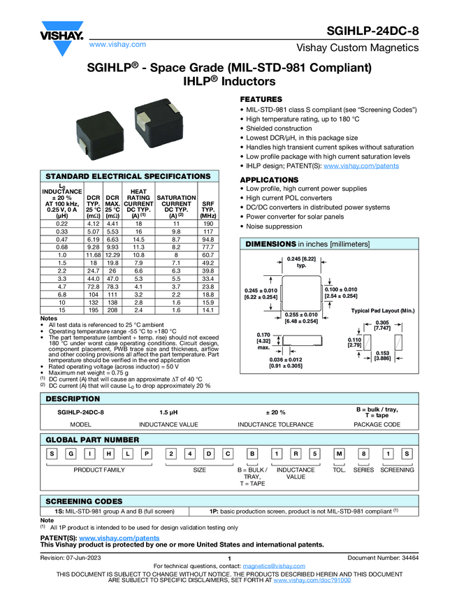 SGIHLP® - Space Grade (MIL-STD-981 Compliant) IHLP® Inductors