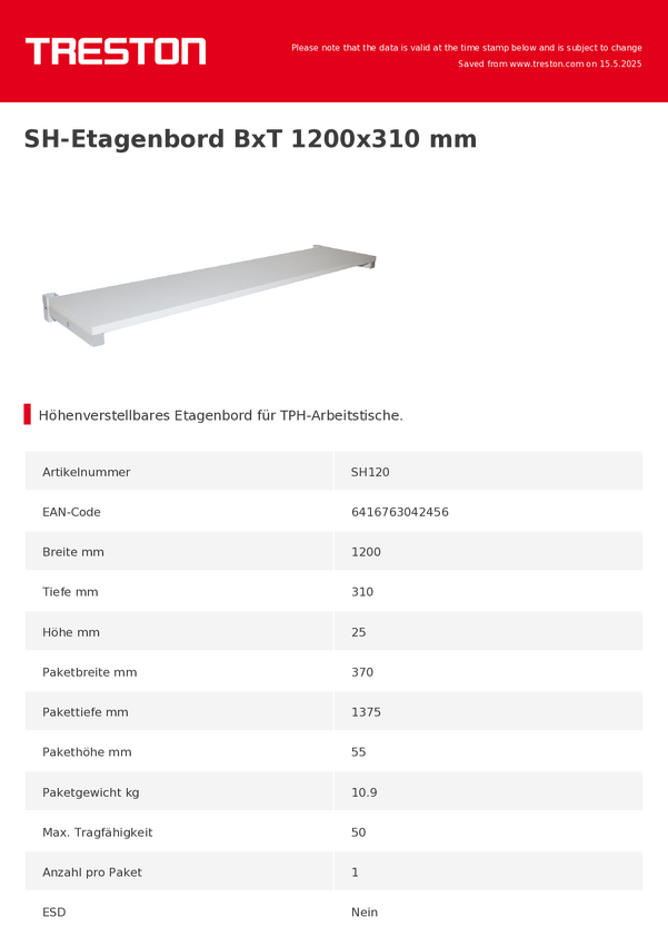 Treston SH150 produkt uniwersalny półka 12.9 kg