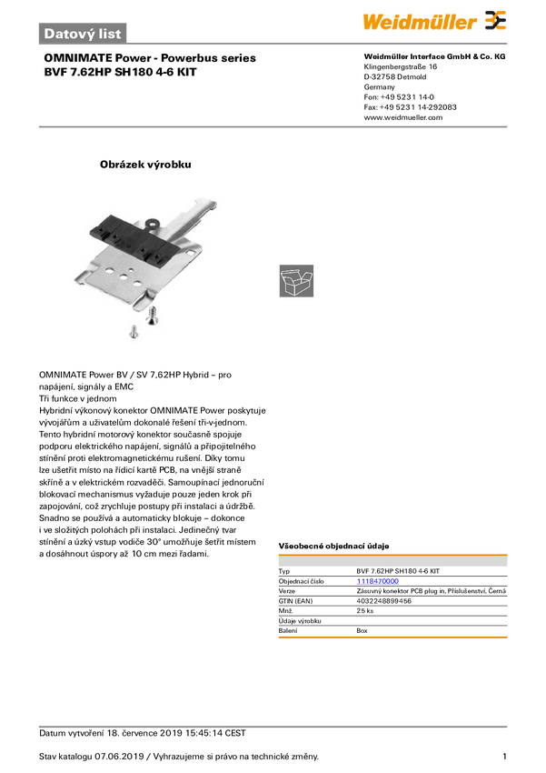 Złącze wtykowe do druku, Akcesoria BVF 7.62HP SH180 4-6 KIT 1118470000 Weidmüller Zawartość: 25 szt.