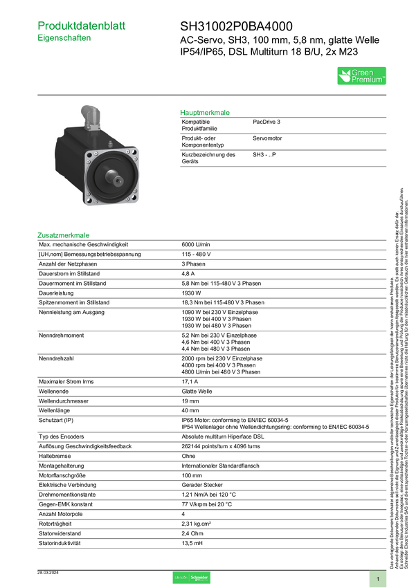 Silnik serwo Schneider Electric SH31002P0BA4100
