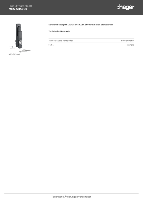 Hager MES-SH5000 Obrotowy uchwyt dźwigniowy 1 szt.