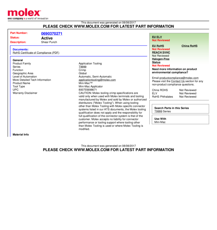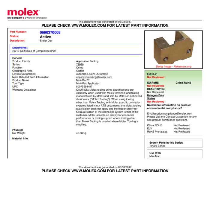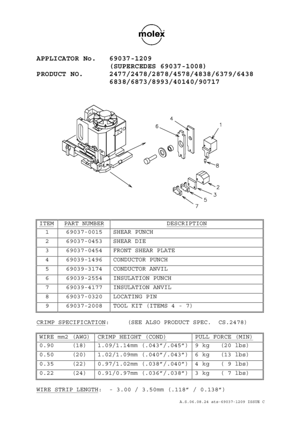 Shear Die for 69037-1209 Mini-Mac Applicator