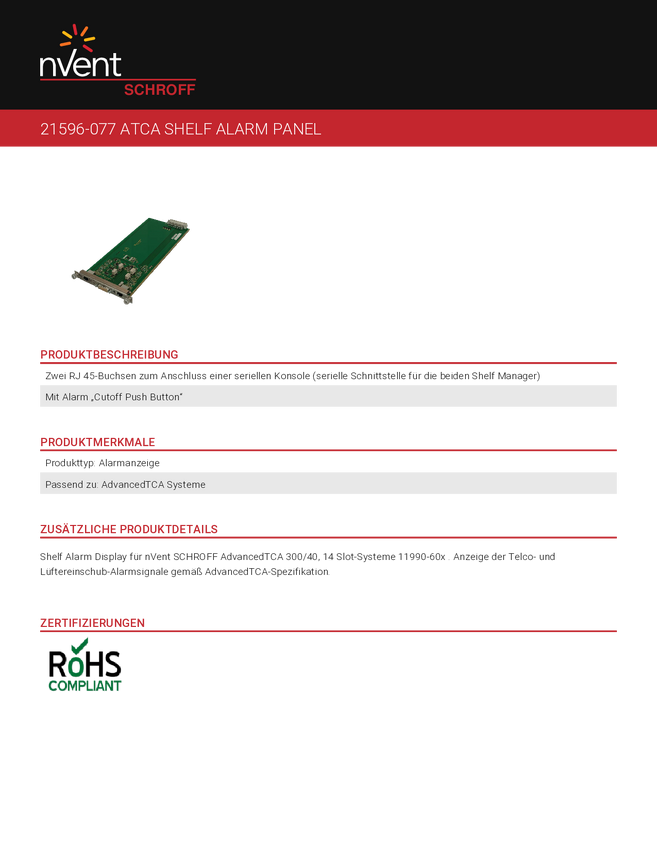 Panel alarmowy półki SCHROFF - PANEL ALARMOWY D-SHELF