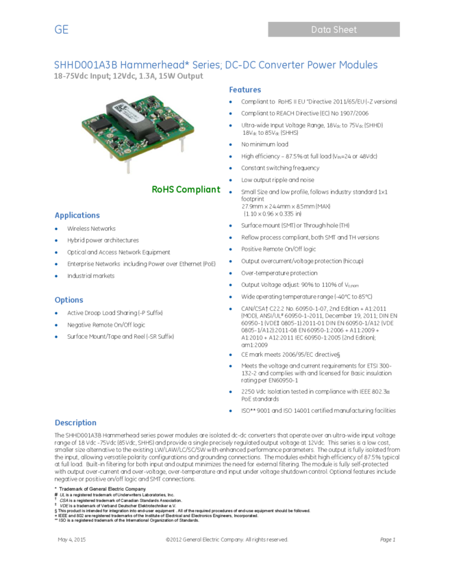 Module DC-DC 1-OUT 12V 1.3A 15W 6-Pin Brick Tray