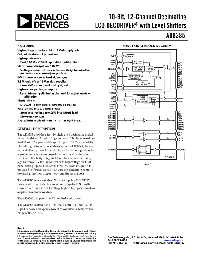10-Bit, 12-Channel Decimating LCD DECDRIVER® with Level Shifters