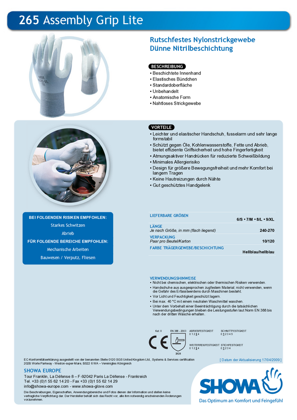 Showa 265 Assembly 1164-9 Nylon Rękawice robocze Rozmiar rękawic: 9, XL EN 388 CAT II 1 par(a)