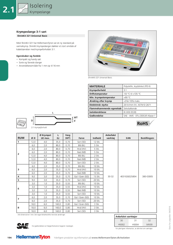 HellermannTyton 380-03005 Rurka termokurczliwa bez kleju ShrinKit 321 Universal Basic-PO-X-MIX, 3:1, 177 części