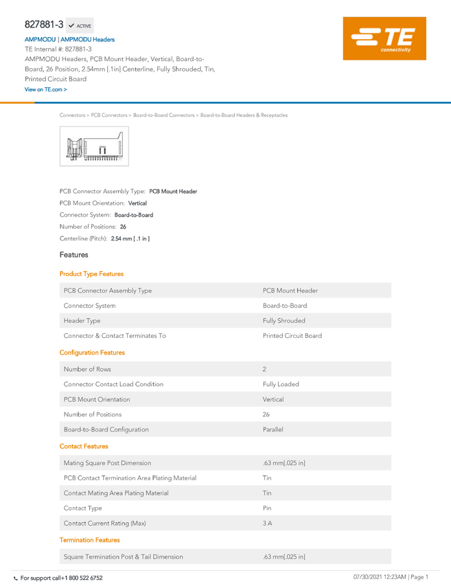 TE Connectivity 827881-3 TE AMP AMPMODU Shrouded Headers, 1 szt.