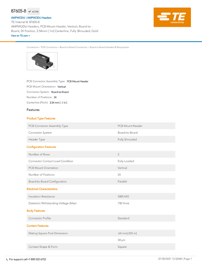 TE Connectivity 87605-1 TE AMP AMPMODU Shrouded Headers, 1 szt.