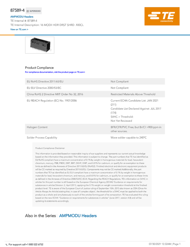 TE Connectivity 87587-7 TE AMP AMPMODU Shrouded Headers, 1 szt.