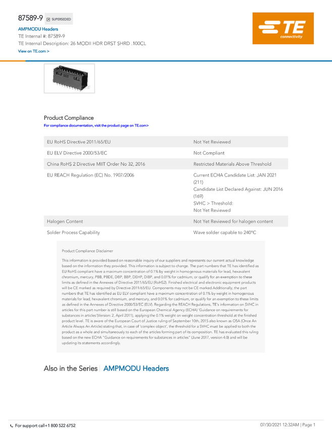 TE Connectivity 87690-2 TE AMP AMPMODU Shrouded Headers, 1 szt.