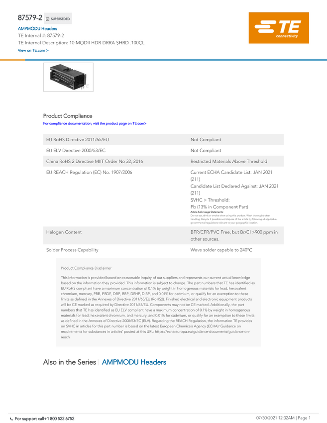 TE Connectivity 7-87579-2 TE AMP AMPMODU Shrouded Headers, 1 szt.