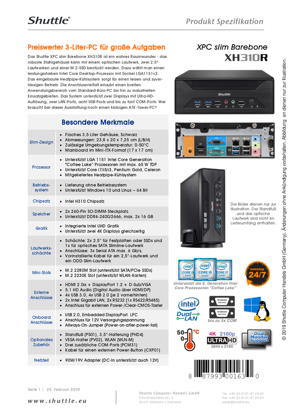 Shuttle Barebone PIB-XH310R21 Intel FreeDOS PIB-XH310R21