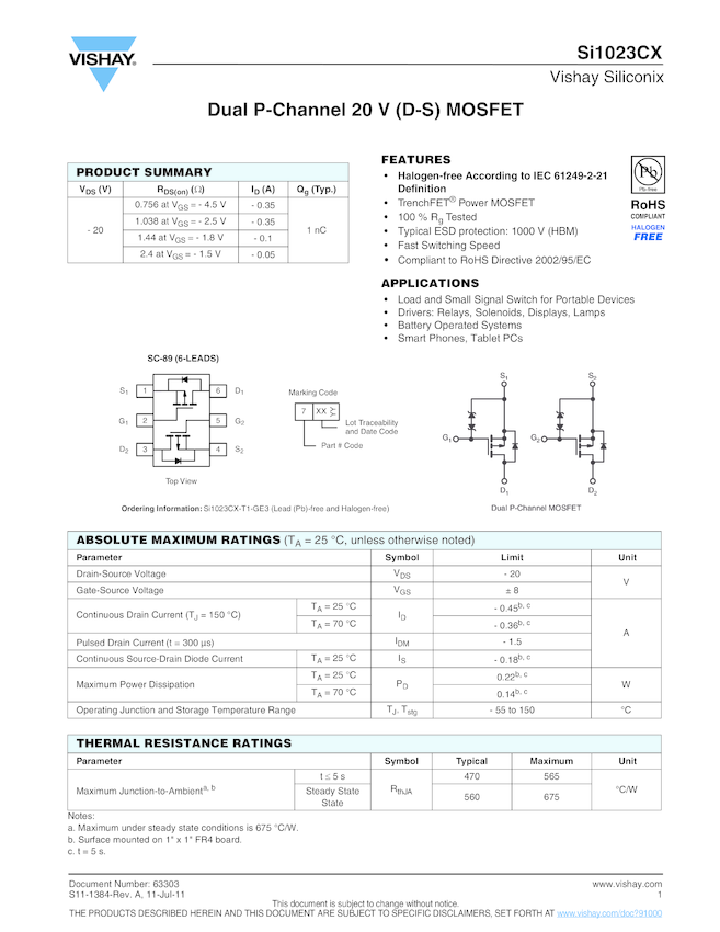 Complementary N- and P-Channel 20 V (D-S) MOSFET