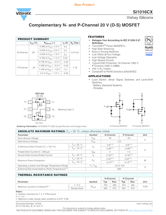 Complementary N- and P-Channel 60 V (D-S) MOSFET