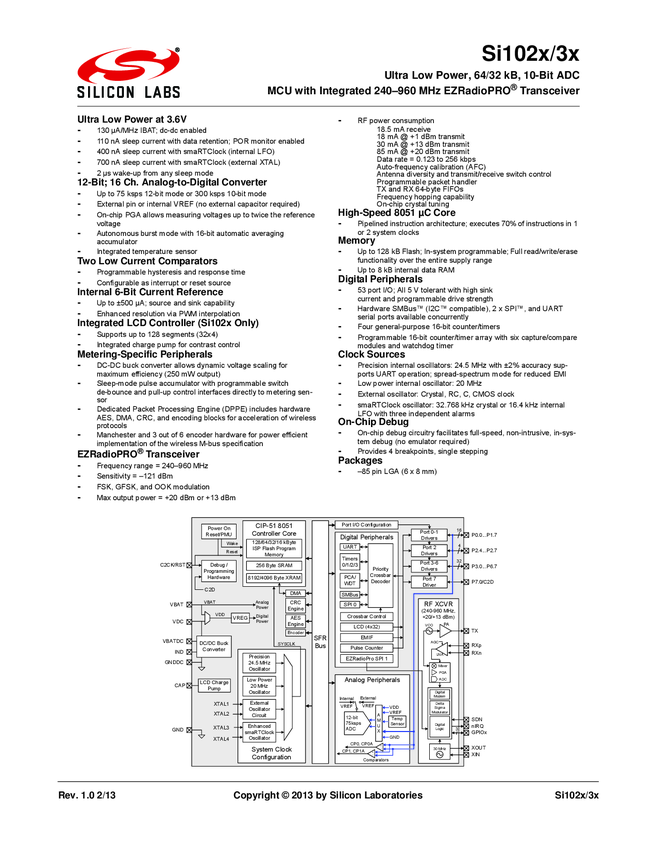 MCU 8-Bit Si103x 8051 CISC 128KB Flash 2.5V/3.3V 85-Pin LGA T/R