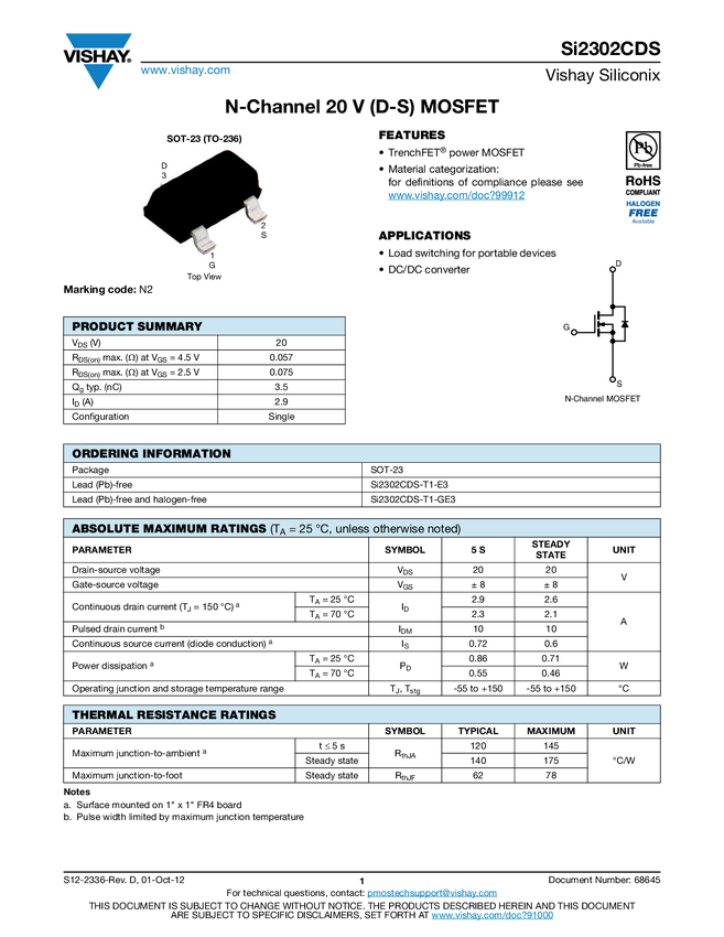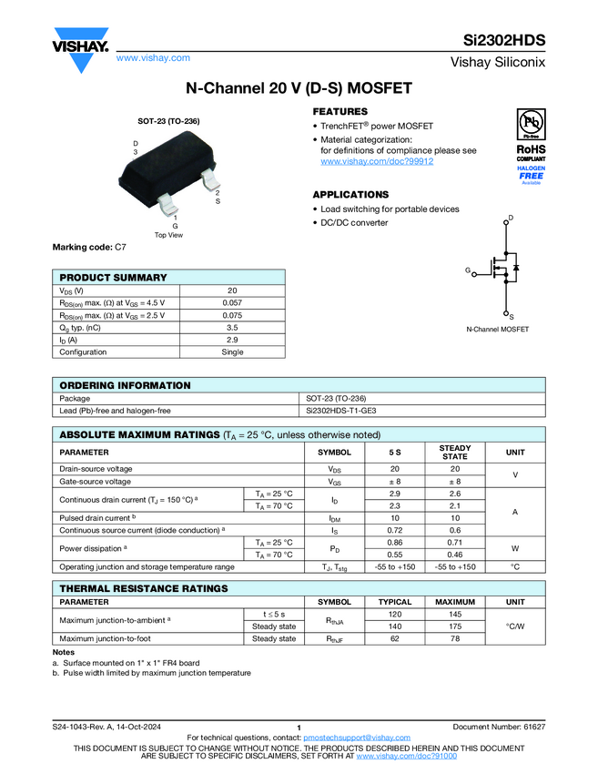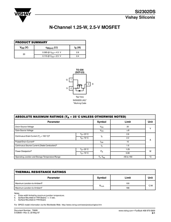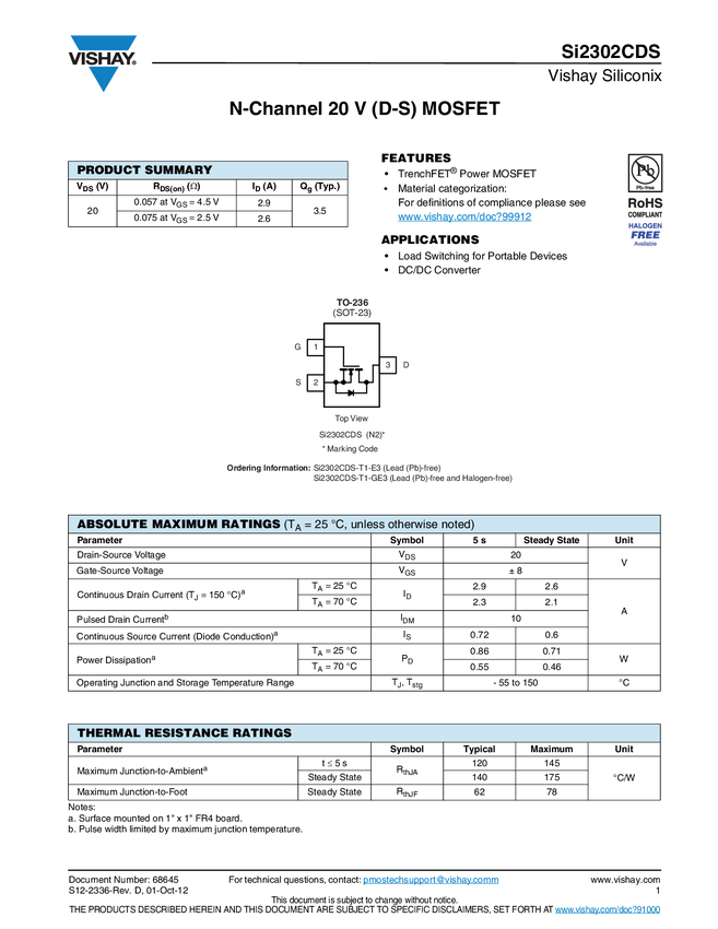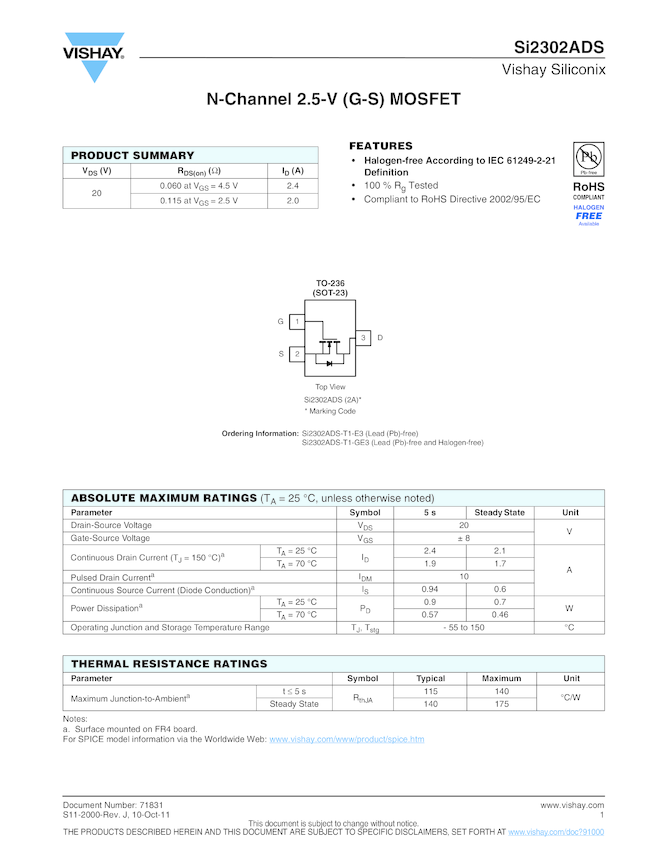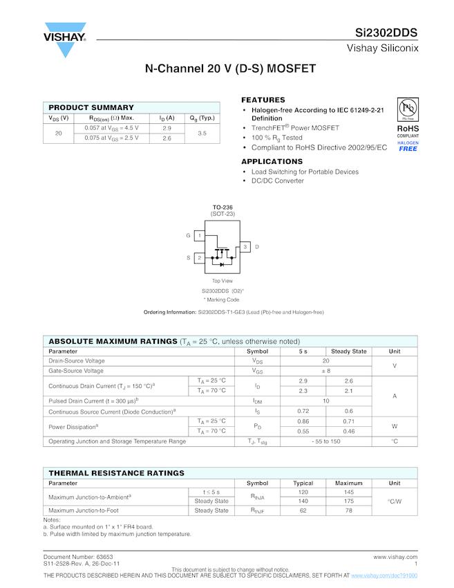 Vishay SI2302CDS-T1-GE3 MOSFET