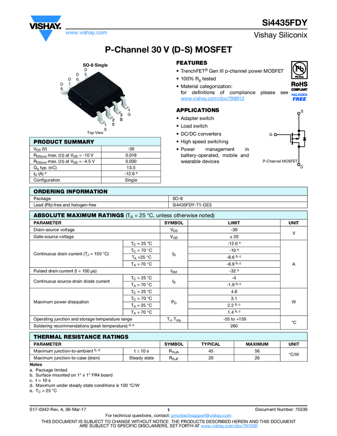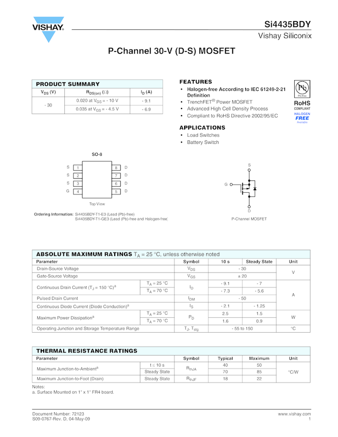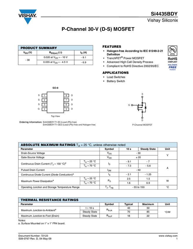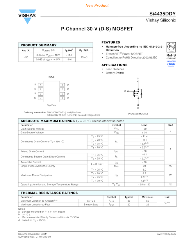 30V P-Channel PowerTrench<sup>® MOSFET -8.8A, 20mΩ